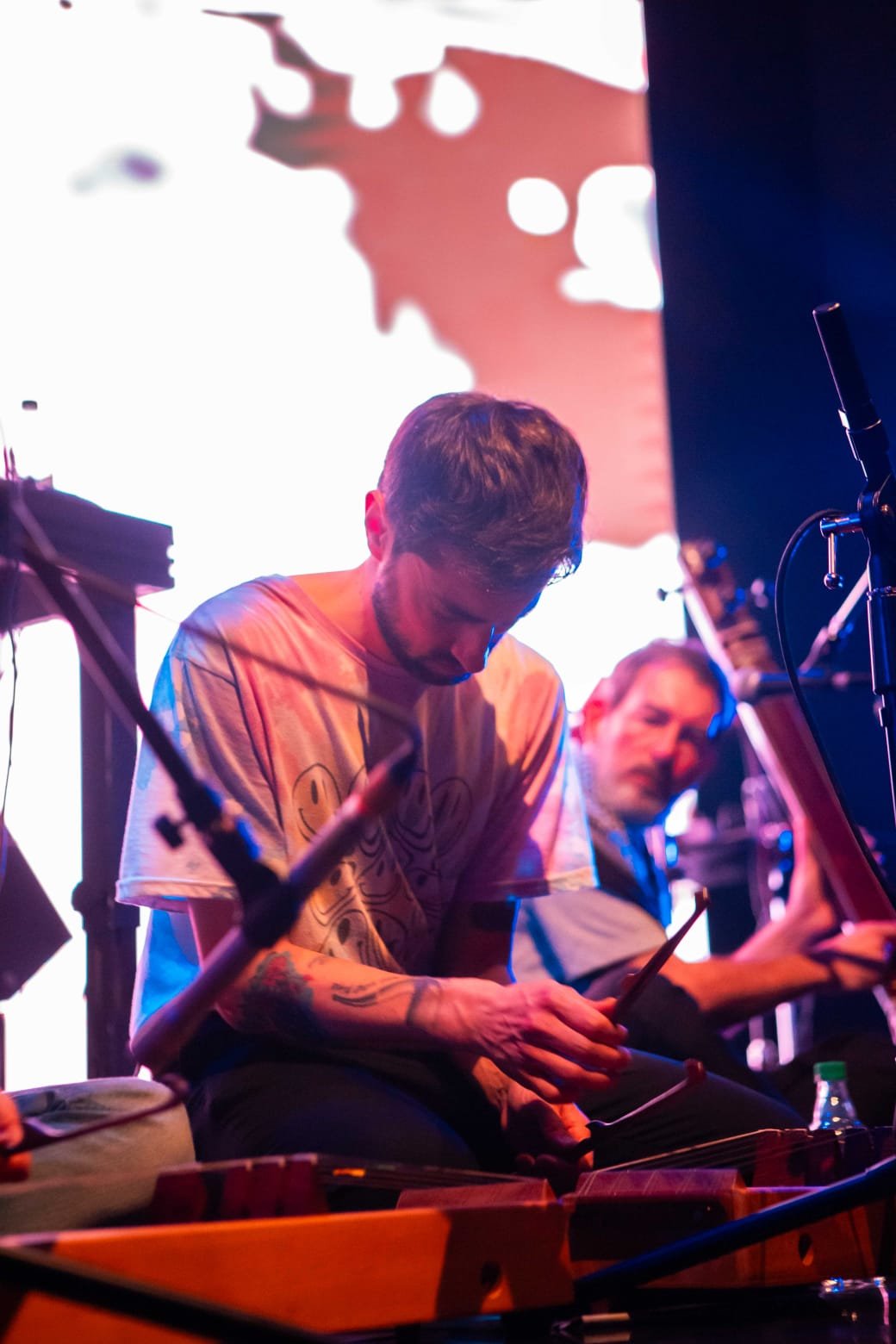 “Nubes y truenos Es una pieza de 25 minutos de duración inspirada en el tercer hexagrama del I Ching, pensada para un órgano, un armonio, cuatro shruti box, una flauta melódica, dos tamburas, dos nvikes (violín qom),  tres violines y cuatro thunder drums. Para este volúmen vamos a ser 14 músicos”, dijo Federico Fossati, y Pablo Reche agregó “con el Sindicato del Drone nos enfocamos en crear ambientes sonoros que se construyan a partir en un abordaje lúdico con una visión comunitaria que enriquezca la producción sonora”