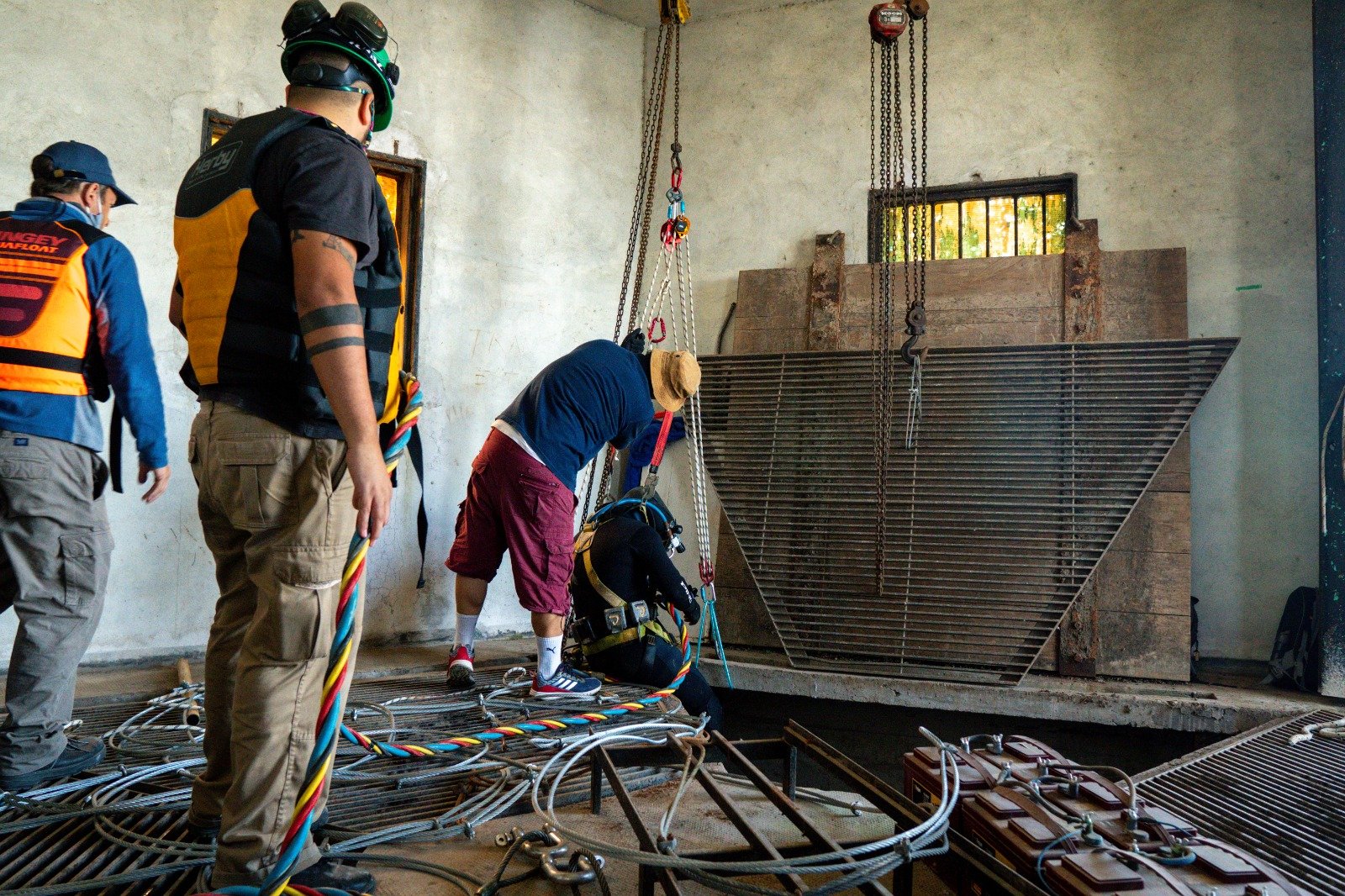 Durante los trabajos un equipo de buzos descenderá para realizar la limpieza y revisión rutinaria de las rejas que evitan el ingreso de objetos provenientes del río, por lo que se requiere garantizar que las condiciones de seguridad sean óptimas.