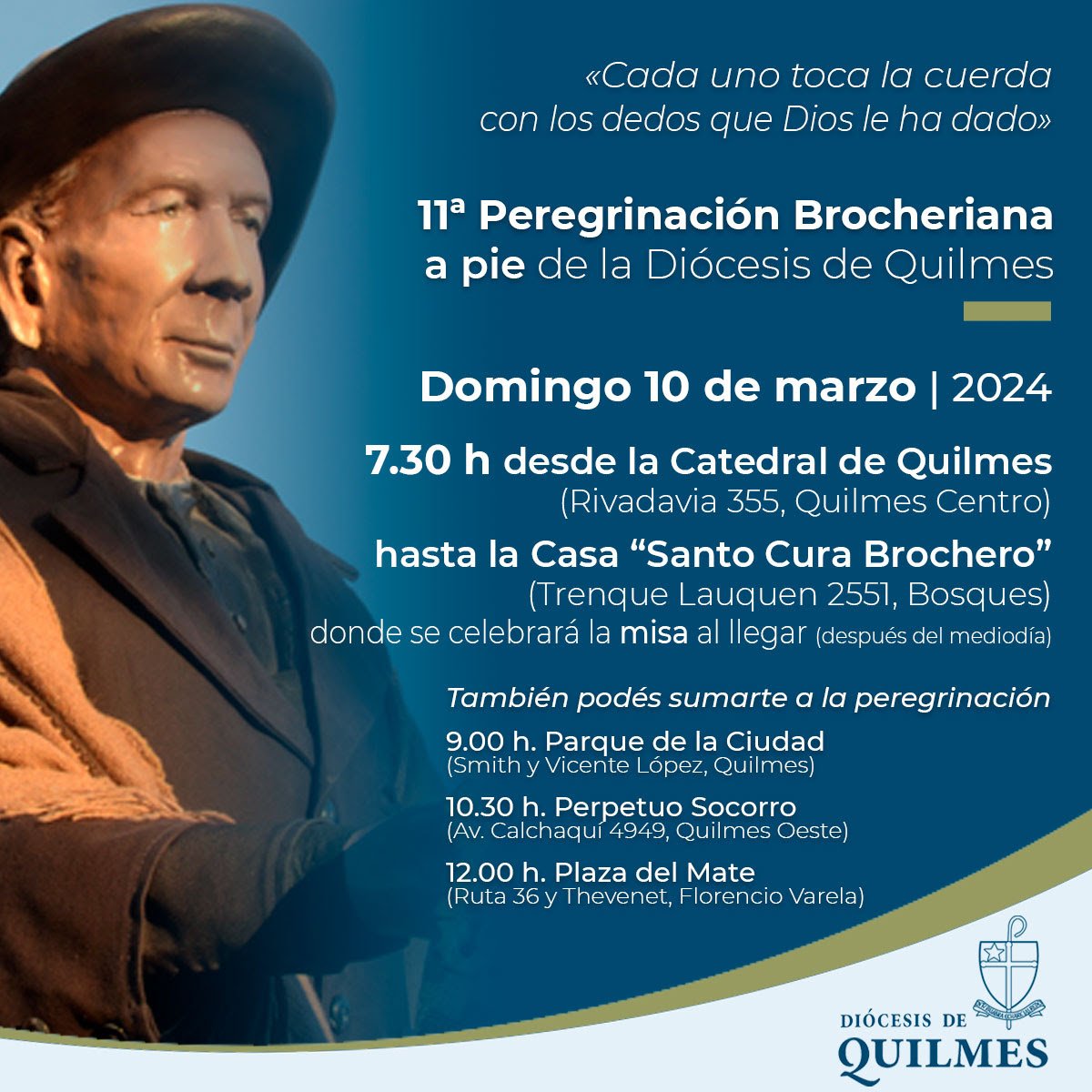 La diócesis de Quilmes se prepara para la décimo primera edición de la Peregrinación Brocheriana a Pie, que se realizará el domingo 10 de marzo, con el lema ‘Cada uno toca la cuerda con los dedos que Dios le ha dado’.