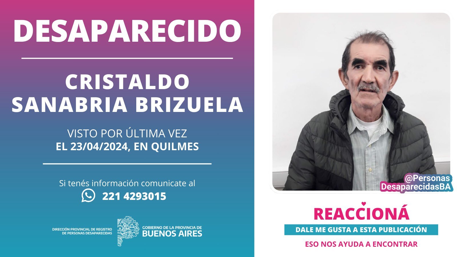 El día de su desaparición, vestía una camisa clara, rayada, una campera negra y pantalón de jean azul. Su familia y amigos están profundamente preocupados ya que podría encontrarse desorientado y necesitar ayuda urgente. La Unidad Funcional de Instrucción y Juicio N° 6 del Departamento Judicial Quilmes tomó cartas en el asunto e interviene activamente en la investigación para dar con su paradero.