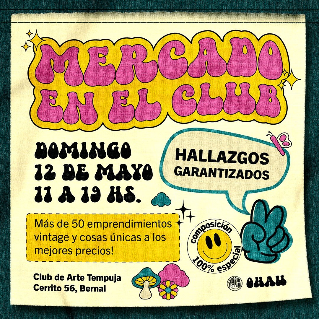 La ciudad se prepara para recibir la quinta edición del "Mercado en el Club", una feria que promete ser un festín para los amantes de la moda vintage y los objetos únicos. Será el próximo Domingo 12 de Mayo, de 11 a 19 hs y contará con más de 50 emprendedores que se darán cita en el Club de Arte Tempuja (Cerrito 56, Bernal).