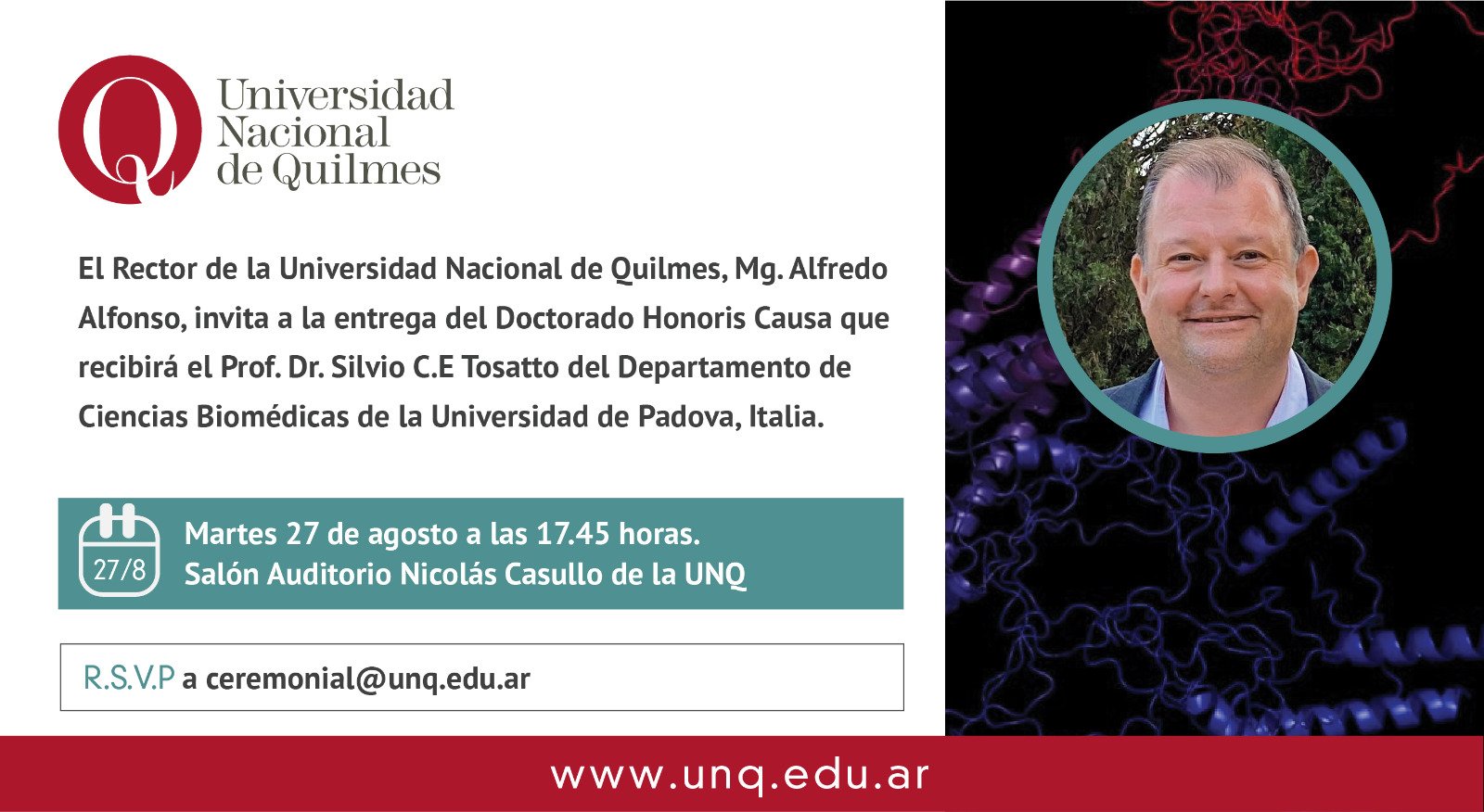 El otorgamiento del Doctor Honoris Causa al Prof. Silvio C. E. Tosatto es una iniciativa del Departamento de Ciencia y Tecnología junto al Rectorado.