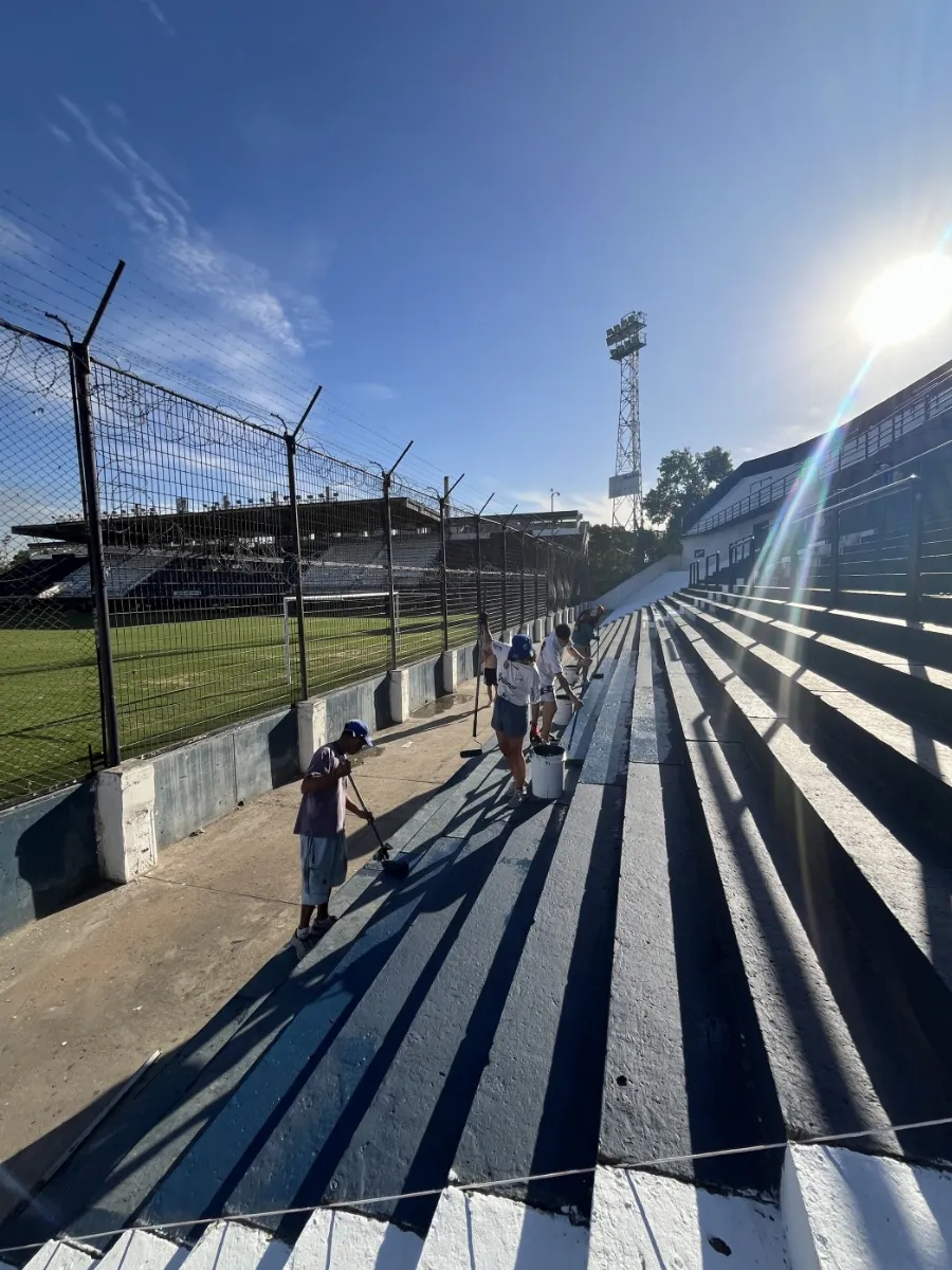 Un punto central de la jornada solidaria fue la colaboración desinteresada del sector privado. La totalidad de la pintura utilizada fue donada por la Pinturería Cumbre, ubicada en Mitre y Colón, cuyos responsables se sumaron a la iniciativa y acompañaron el esfuerzo de los hinchas y socios, aportando los materiales necesarios para llevar adelante el trabajo.