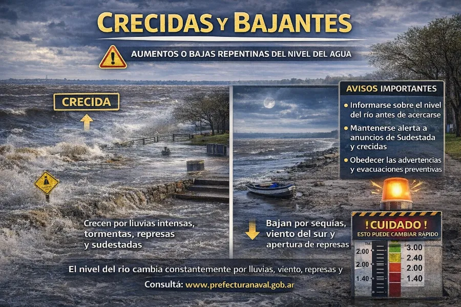 “El río puede parecer tranquilo, pero es un ambiente en constante cambio. Corrientes ocultas, pozos profundos y crecidas repentinas son responsables de muchos accidentes evitables. La información y el respeto por las normas salvan vidas”, subrayó el especialista. El material presentado incluye infografías educativas que explican de forma clara los peligros invisibles del río y cómo las variaciones del nivel del agua modifican sus condiciones, con el objetivo de generar mayor conciencia y reducir los accidentes durante la temporada de calor.