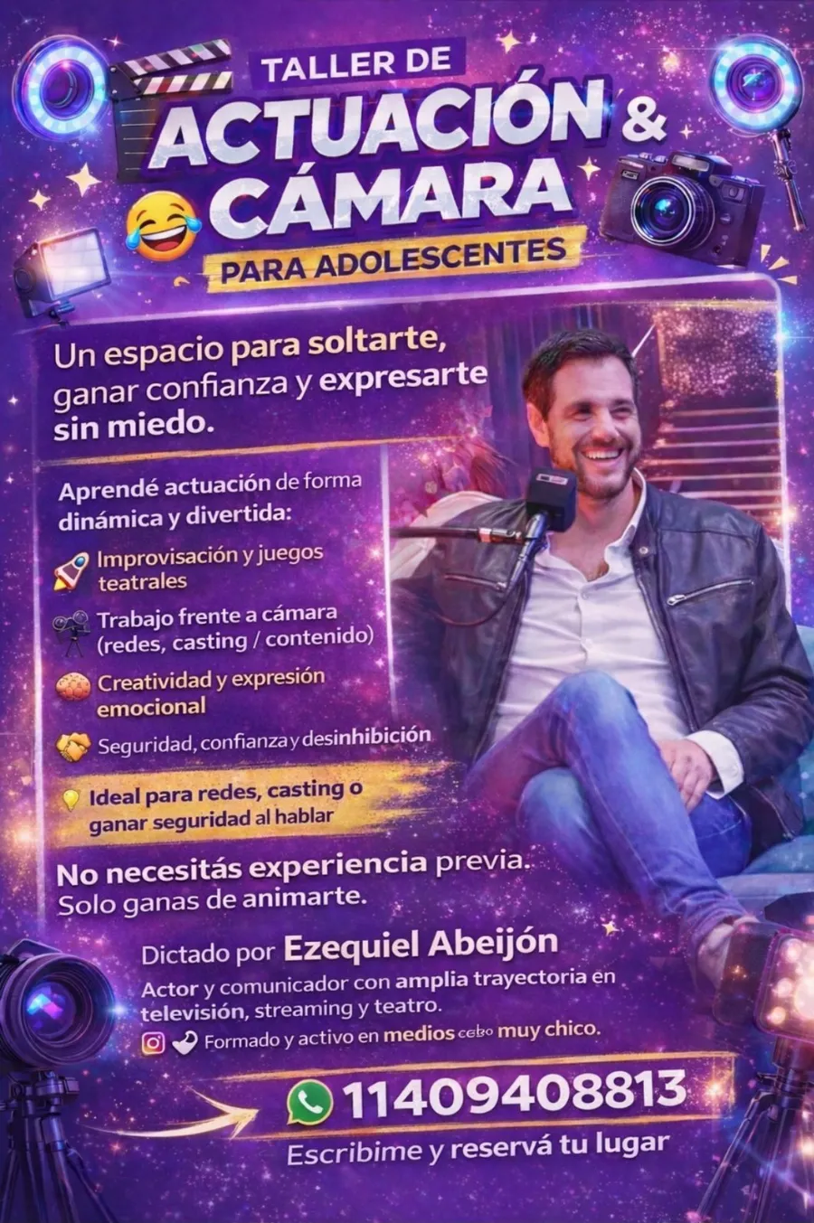 El actor y comunicador quilmeño Ezequiel Abeijón, con una destacada trayectoria en televisión, streaming y teatro, impulsa una serie de cursos orientados a potenciar la expresión, la confianza y las habilidades comunicativas tanto en jóvenes como en adultos.