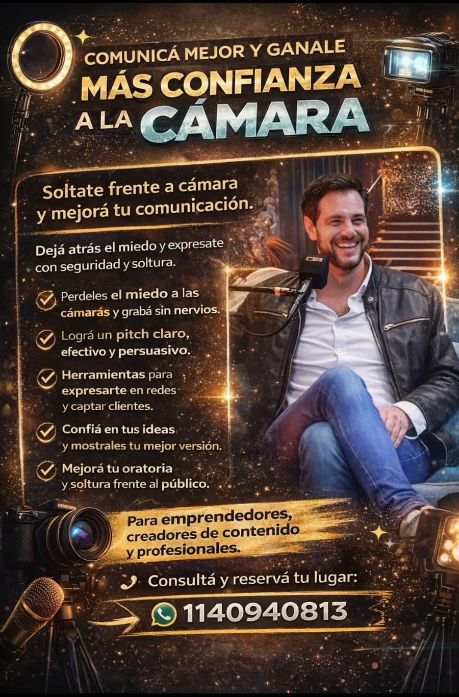 Por otro lado, Abeijón también ofrece un curso enfocado en la comunicación y la oratoria frente a cámara, dirigido a emprendedores, creadores de contenido y profesionales que buscan mejorar su presencia, claridad y confianza al momento de comunicar. Este espacio apunta a brindar herramientas concretas para desenvolverse con seguridad en entornos digitales, optimizar el discurso y fortalecer la conexión con la audiencia.